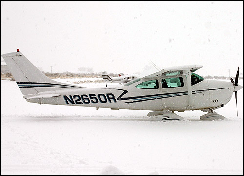 A good friend who just moved to Susanville, CA sent me this photo of his Skylane sitting on the ramp. He said, “Four people were expecting to witness a crash and I made a perfect landing with 100 ft overcast on 6″ of fresh snow on the runway!”